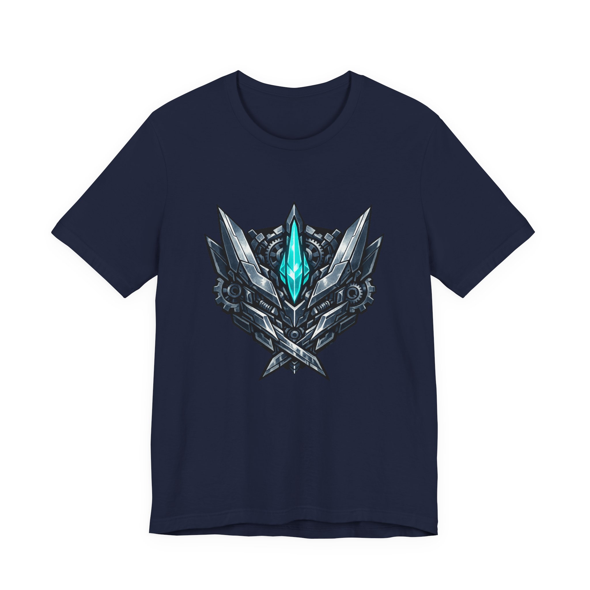 Bladecore Mech Emblem Shirt: Sharp, minimal, and battle-ready — this emblem tee is for sci-fi fans who prefer gritty, mechanical style over loud character art. A single mech crest occupies the center chest: angular blades, exposed gears, and a core reactor shard that glows with cold light. The design is intentionally stark and emblematic so it functions like a badge of belonging for mech pilots and sci-fi streetwear fans. It prints in high-contrast two-to-three color separations to keep lines crisp on DTG and looks great layered under jackets. This shirt works at conventions, meetups, or as daily armor for the sci-fi obsessed.