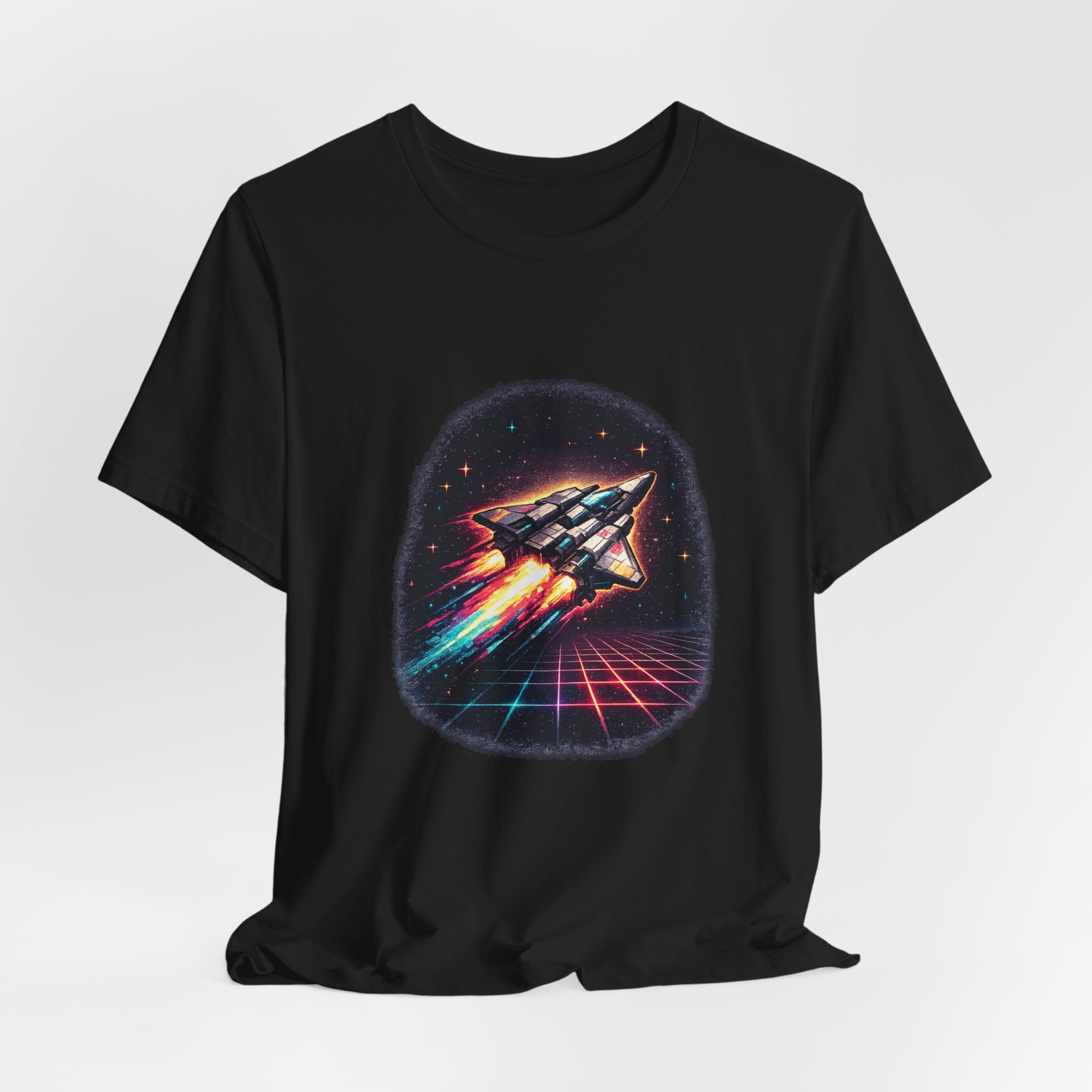 Pixel Blaster Retro Arcade T-Shirt: Bring back the glory days of arcade nights with this bold, high-contrast pixel spaceship design. Perfect for gamers who grew up on quarter-munching cabinets and synthwave soundtracks, this tee captures that electric nostalgia in a single print-ready composition. The design sits centered on the chest with chunky pixels, neon highlights, and a clean silhouette that reads well on dark fabrics. Wear it to local arcade nights, speedrun meetups, or when you want to flex your retro cred — it’s loud, proud, and unmistakably arcade. Printed for durability with DTG-ready contrast so the neon pops against deep tees, this shirt pairs great with denim or a bomber jacket for full 80s vibes.
